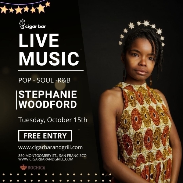 Join us on our newly opened day of the week, Tuesdays, for an unforgettable evening of live music at Cigar Bar & Grill! 🎶✨ We're thrilled to present Stephanie Woodford, a talented pop, soul, and R&B singer/songwriter, for an evening of soulful melodies and captivating performances. Stephanie’s rich musical background includes studies at the San Francisco Conservatory of Music and City College of San Francisco, along with a series of impressive accolades and performances, including singing with the San Francisco Symphony.